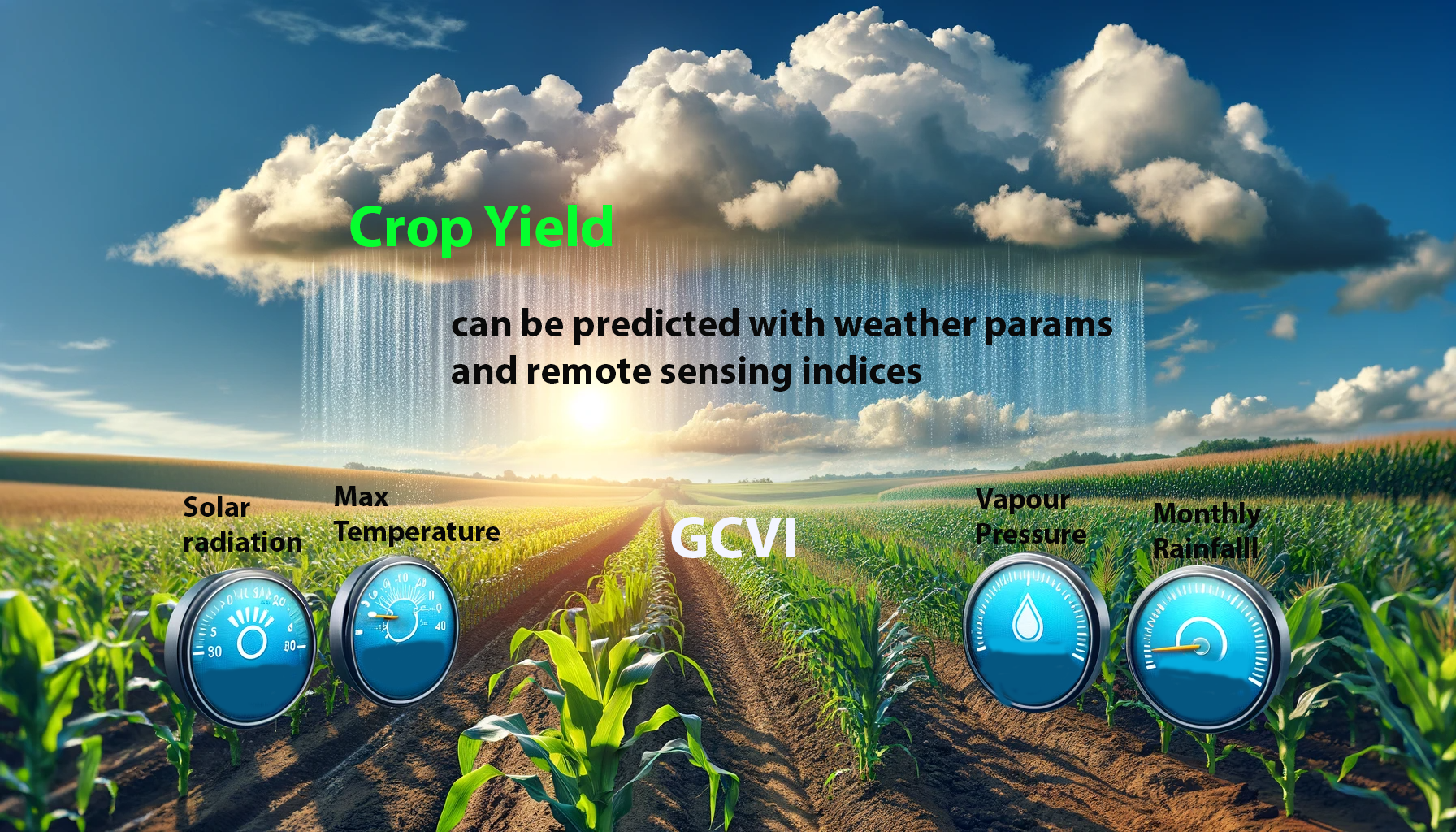 Using the simulated values of GCVI we now only need to establish a relationship between Yield and GCVI. With this relationship we can operationally monitor Crop Yield based on regularly produced GCVI from satellite imagery. The SCYM method takes the simulated crop yield values and with a simple multiple linear regression relates Yield to GCVI and important weather parameters that determine crop yield (mean solar radiation, average vapour pressure deficit, average daily max temperature, total seasonal rainfall). Finally solving the regression equation for actual GCVI values (early and late season) and weather parameters gives us estimated crop yields.